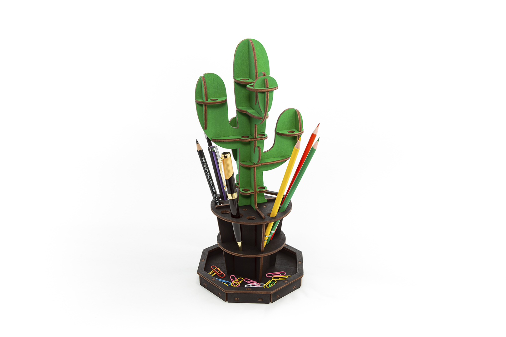 КАКТУС (зелёный) Набор для самостоятельной сборки настольной подставки для канцелярских принадлежностей. Отличный конструктор, замечательный подарок, оригинальный предмет для систематизации рабочего